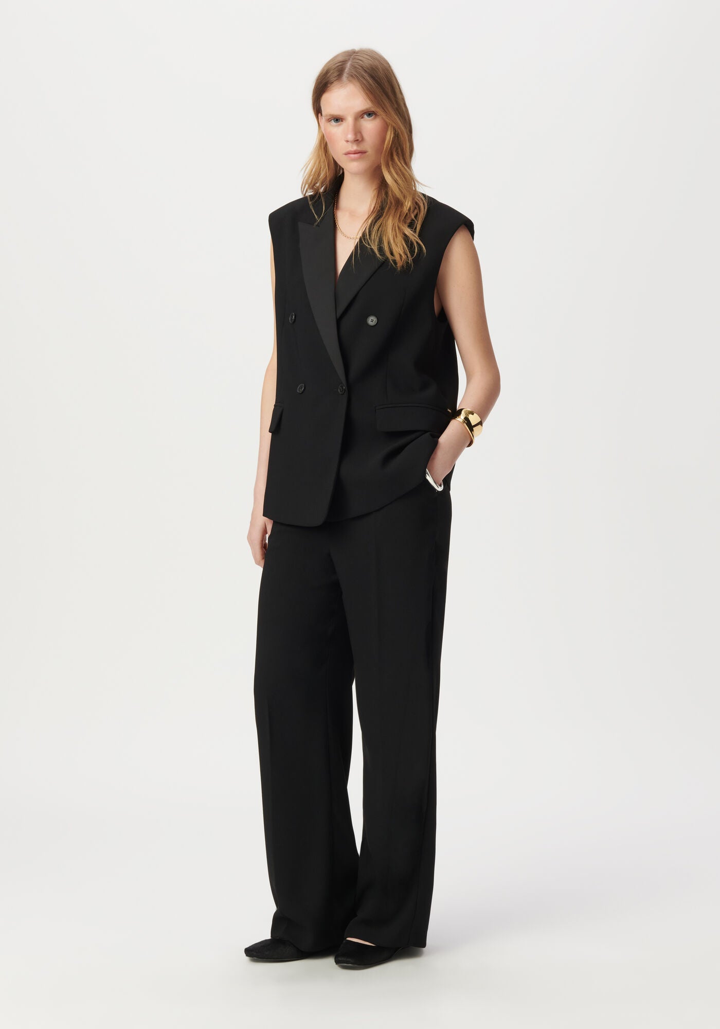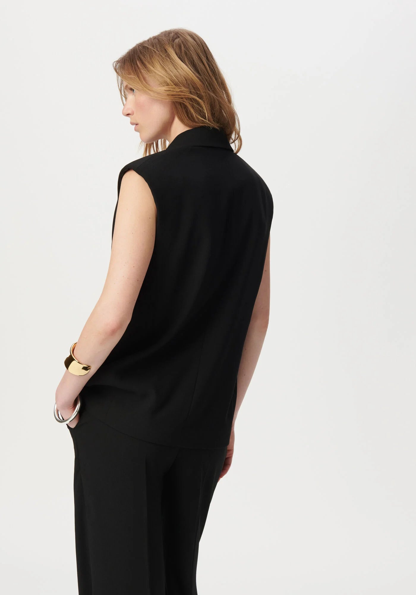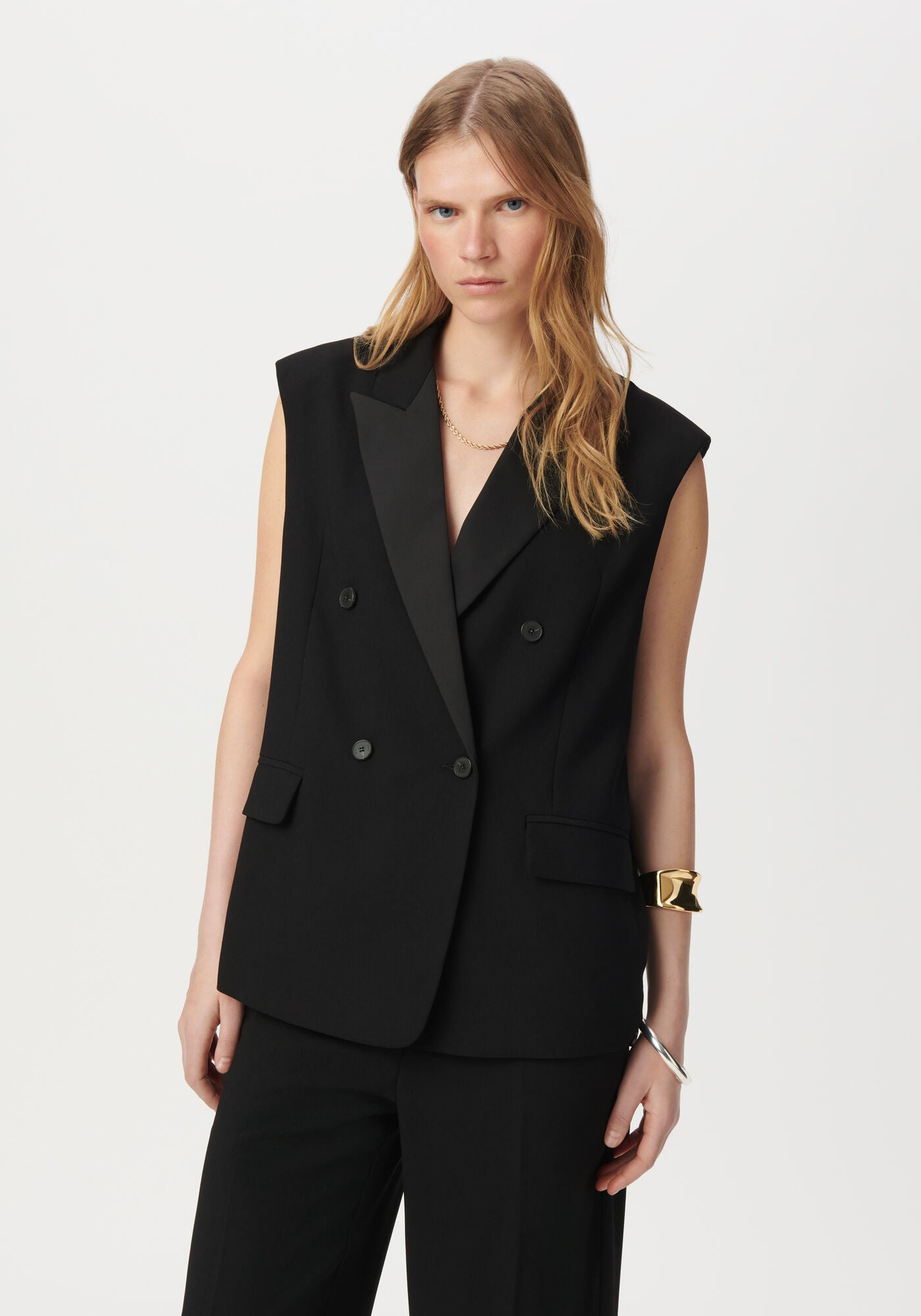Decide, with a black tailored jacket. Dare, with a sleeveless version and a tuxedo collar. A resolutely winning fashion match, for self-confidence as well as for style.