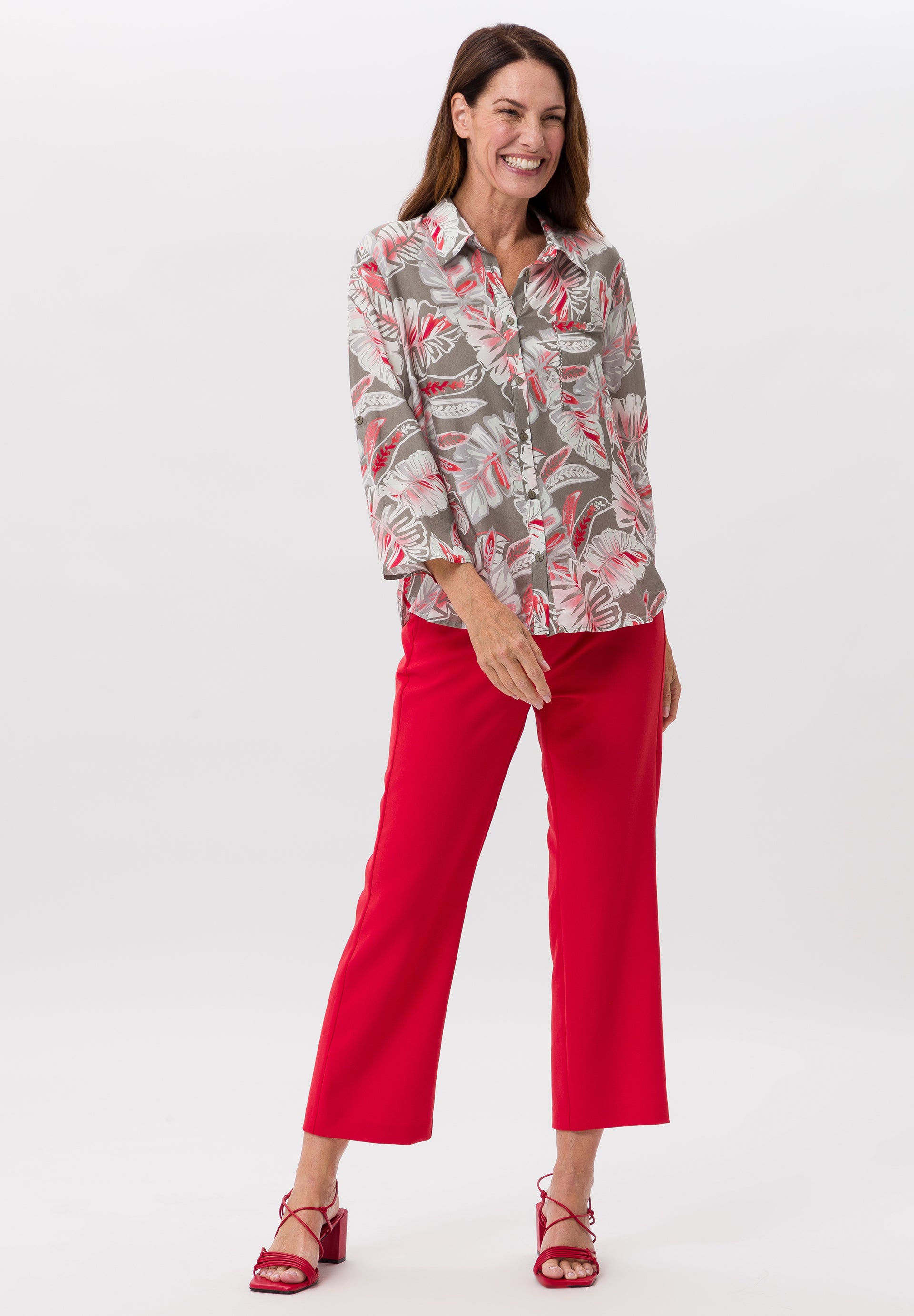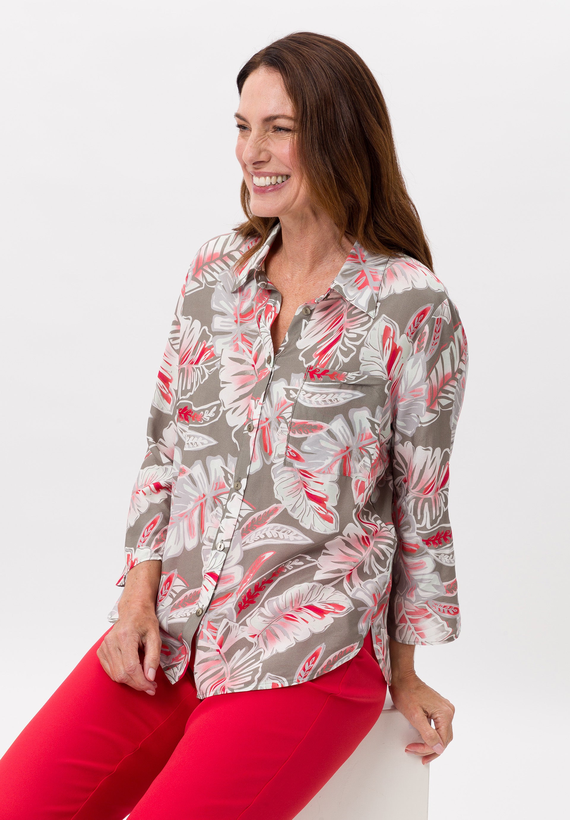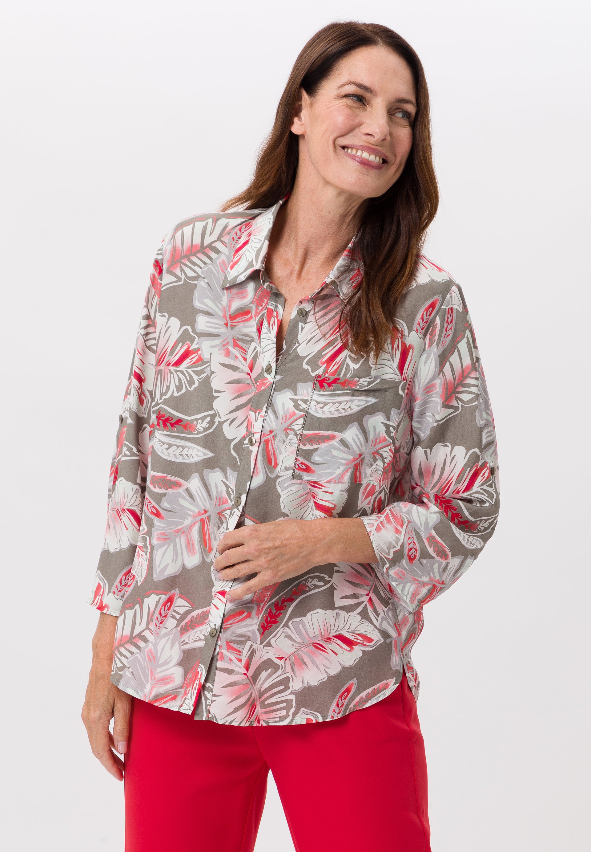 A print blouse with a wow factor for style-conscious women. The style impresses not only with its striking design but also with its charming details. A lovely touch: the decorative chain on the pocket.