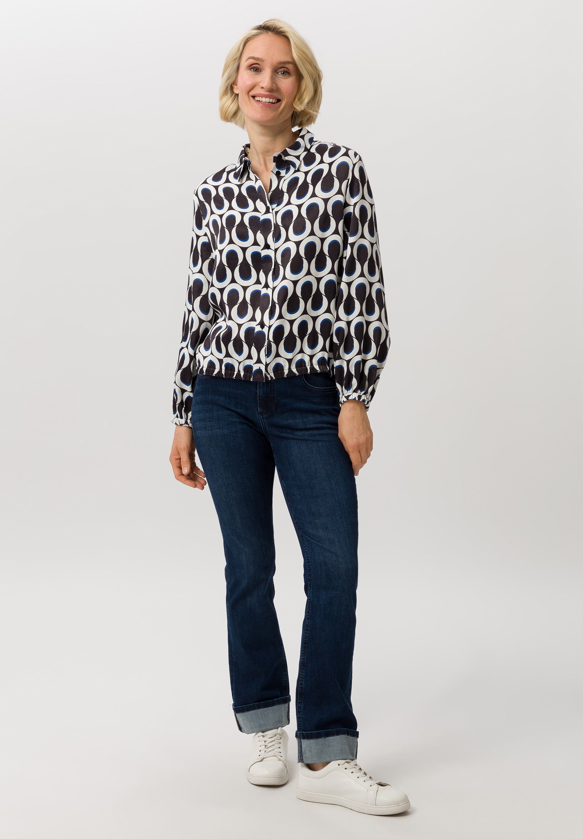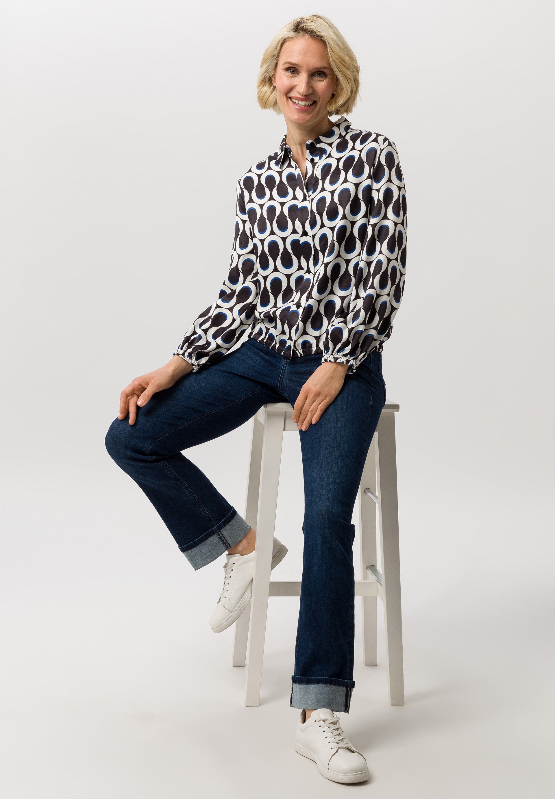 This blouse in a unique print has a loose fit and brings a breath of fresh air to your wardrobe. The straight cut with full-length button placket gives it a relaxed silhouette. The wide sleeves with elastic waistband and the elastic waistband give it effortless chic. Made of noble viscose with a pleasant feel.
