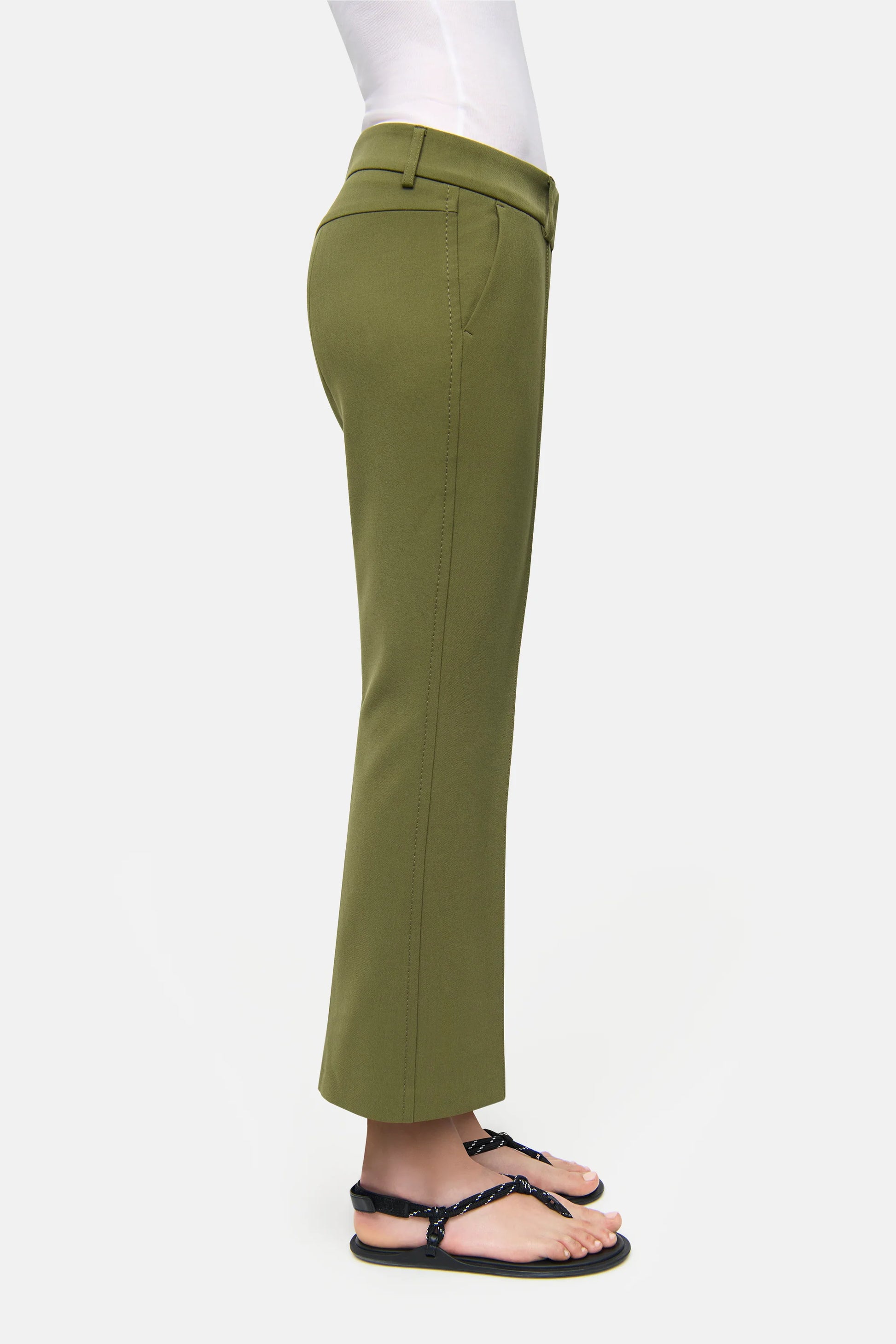 Flared trousers in a cropped length. These trousers in elegant green, made from high-quality Wool Substitute Double, offer the perfect foundation for elegant, classy looks. A sewn-on piping adds a subtle accent to the front, while side pockets complete the design. Available in green, black, gray, and navy.