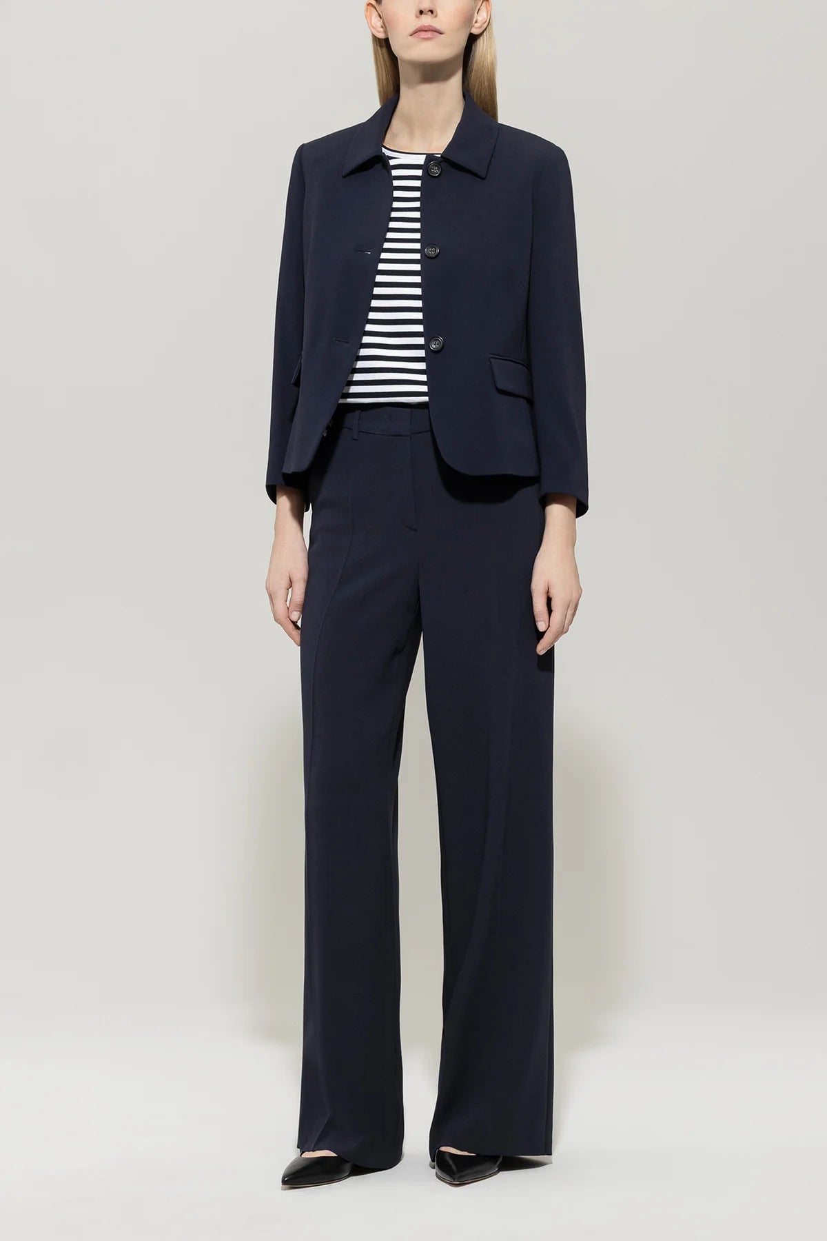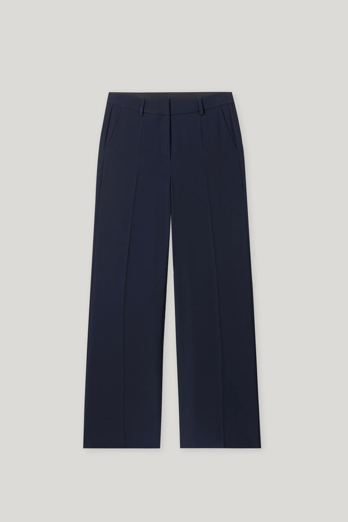 Wide-cut trousers made from flowing triacetate crêpe with a smooth satin interior. The classic design features belt loops, two side pockets and two indicated back pockets.