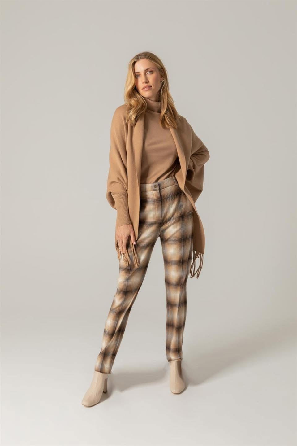 Панталони кои што ќе го направат вашиот аутфит winter-proof, направени од чешлана предена волна и мешавина на стреч. Интегрираните камел и кафени тонови и даваат на плетената ткаенина мек и женствен карактер. Искомбинирајте ги панталоните со џемпер или сплетена ролка во нежна и неутрална боја
