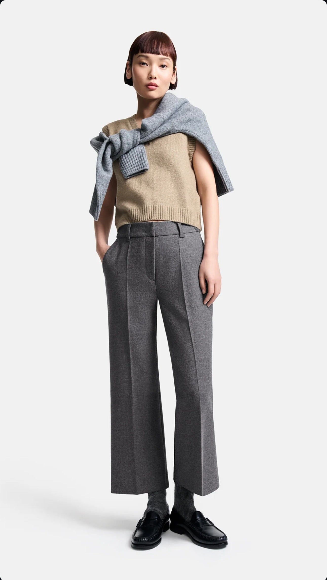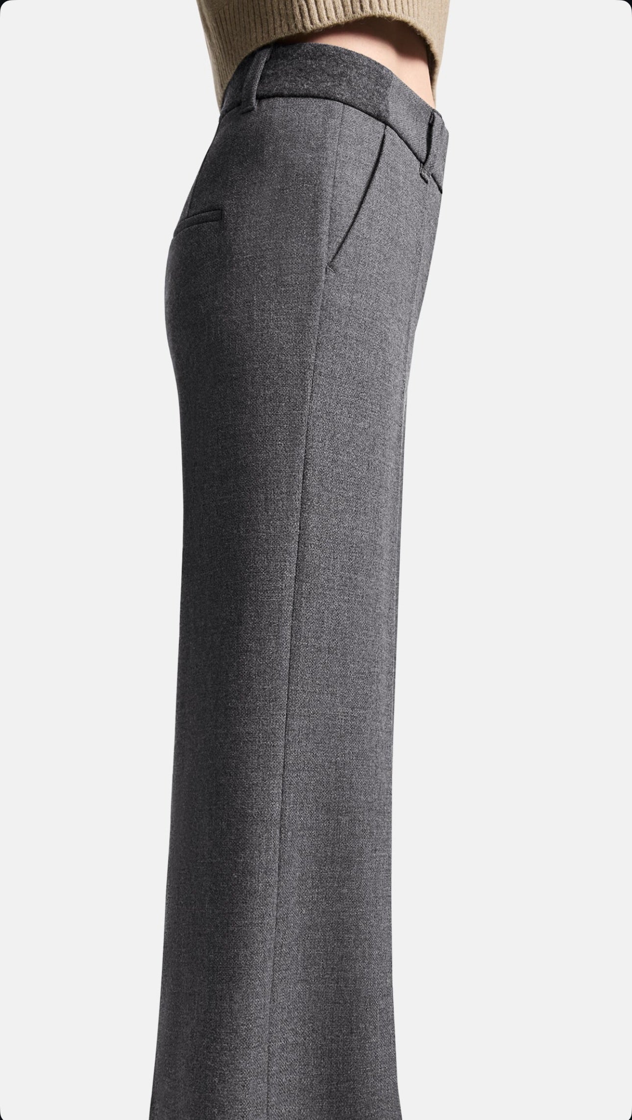 Панталони во сива боа, направени од високо квалитетен материјал - мешавина на волна, со модерна широка силуета