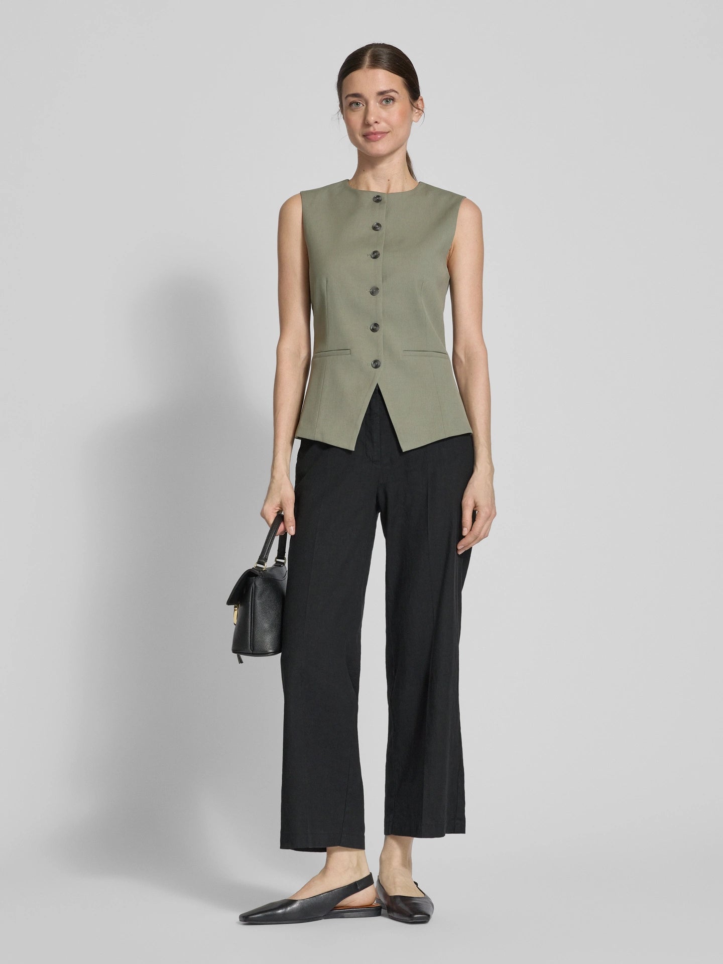 Cropped trousers that combine lightness with elegance. The linen blend with cotton ensures a comfortable fit, while the welt pockets on the back add subtle accents. These trousers are ideal for relaxed, stylish looks.