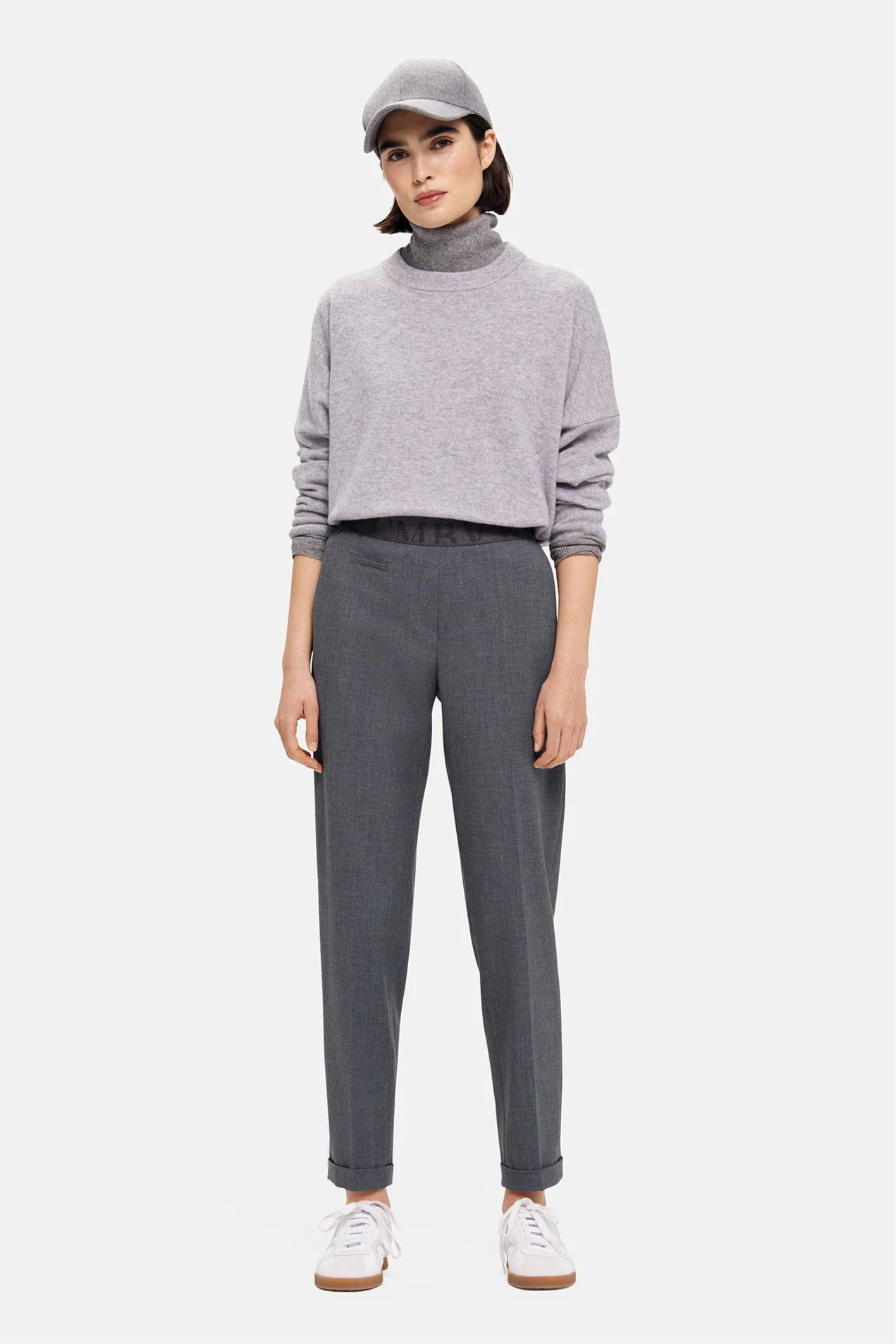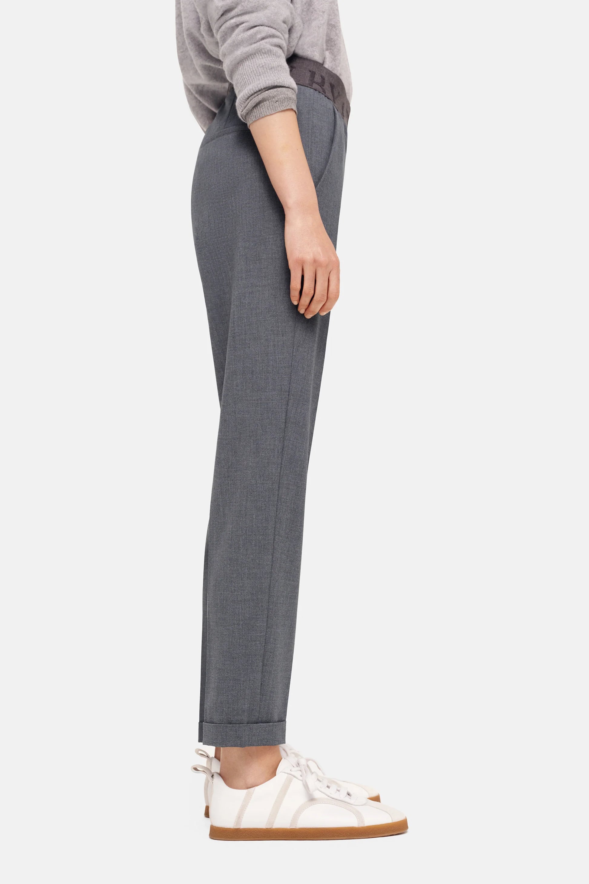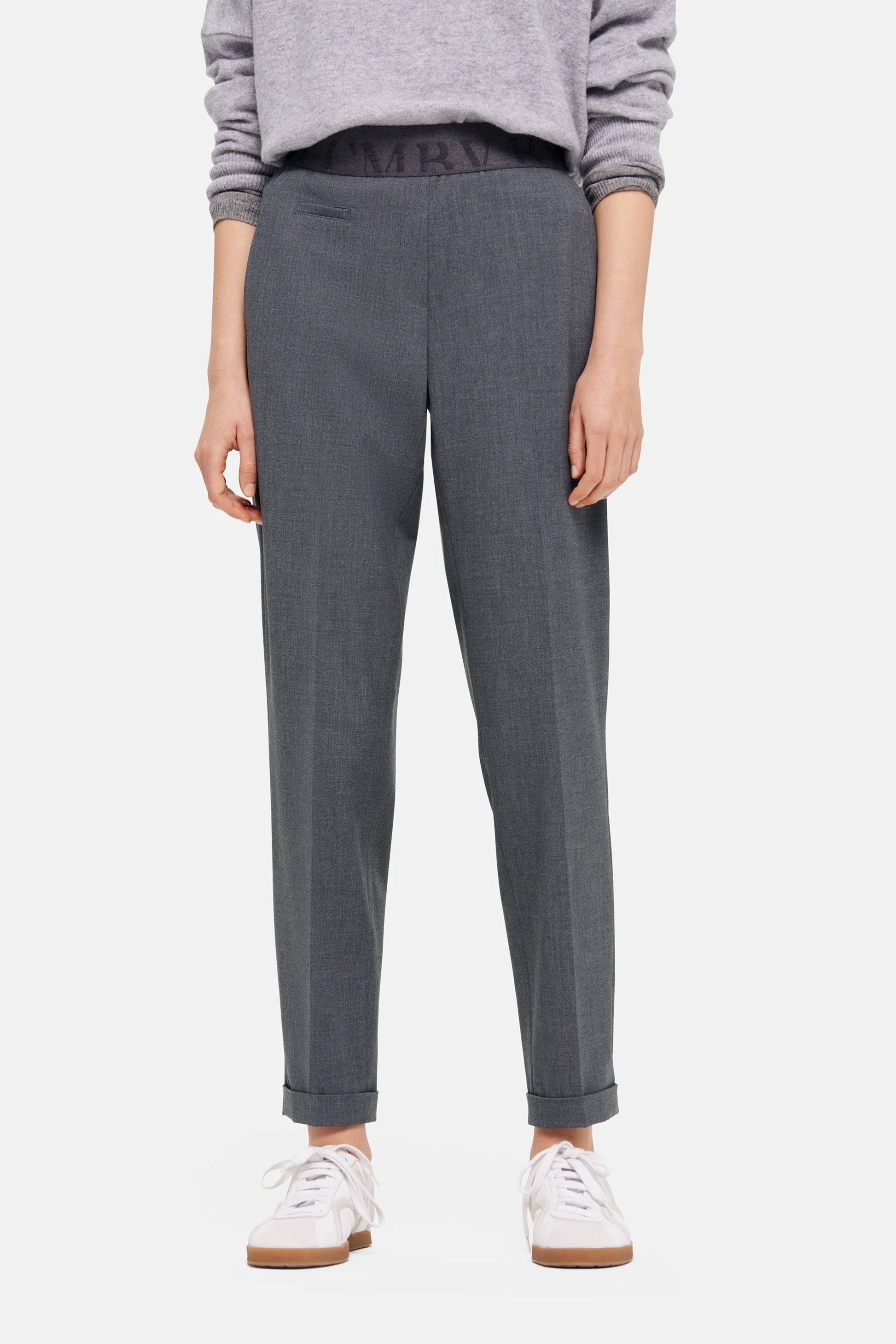 Pants in shortened length and trendy carrot silhouette. The trousers in High Performance Wool Substitute Fabric create a casual look thanks to the wording waistband and the turn-over at the hem. The elastane content provides additional comfort. Trousers Carrot-Fit Cropped With Elastic Waistband