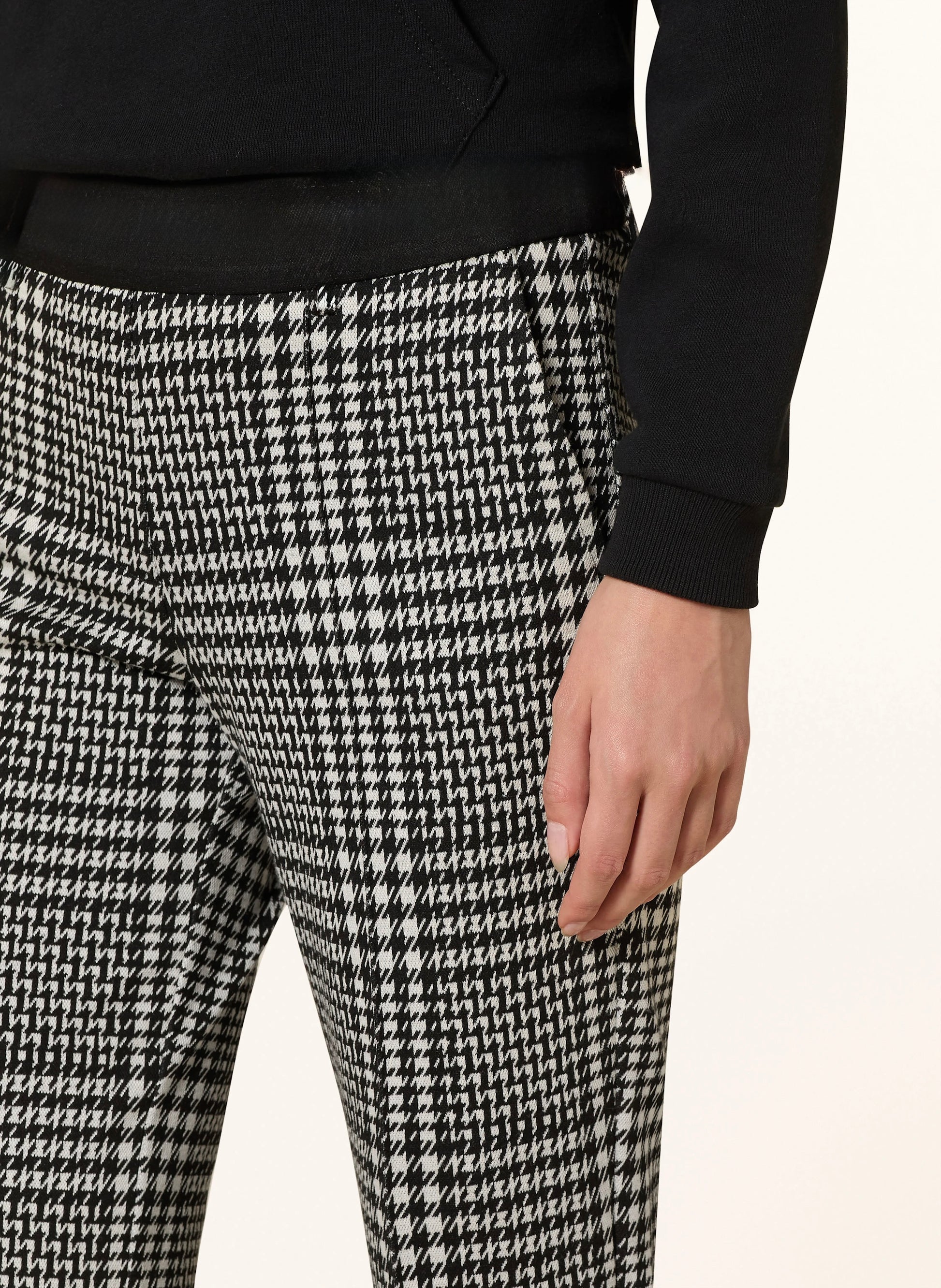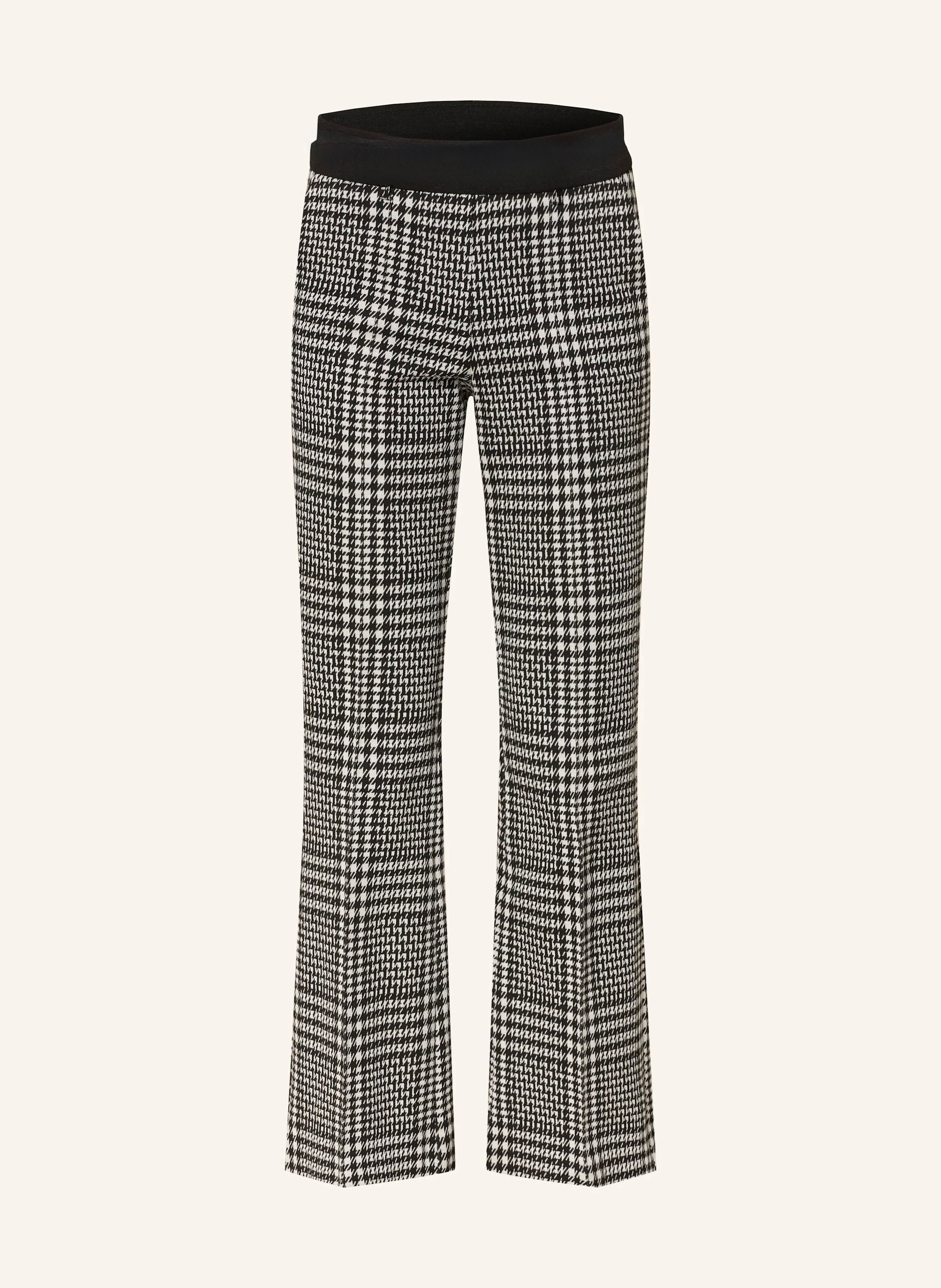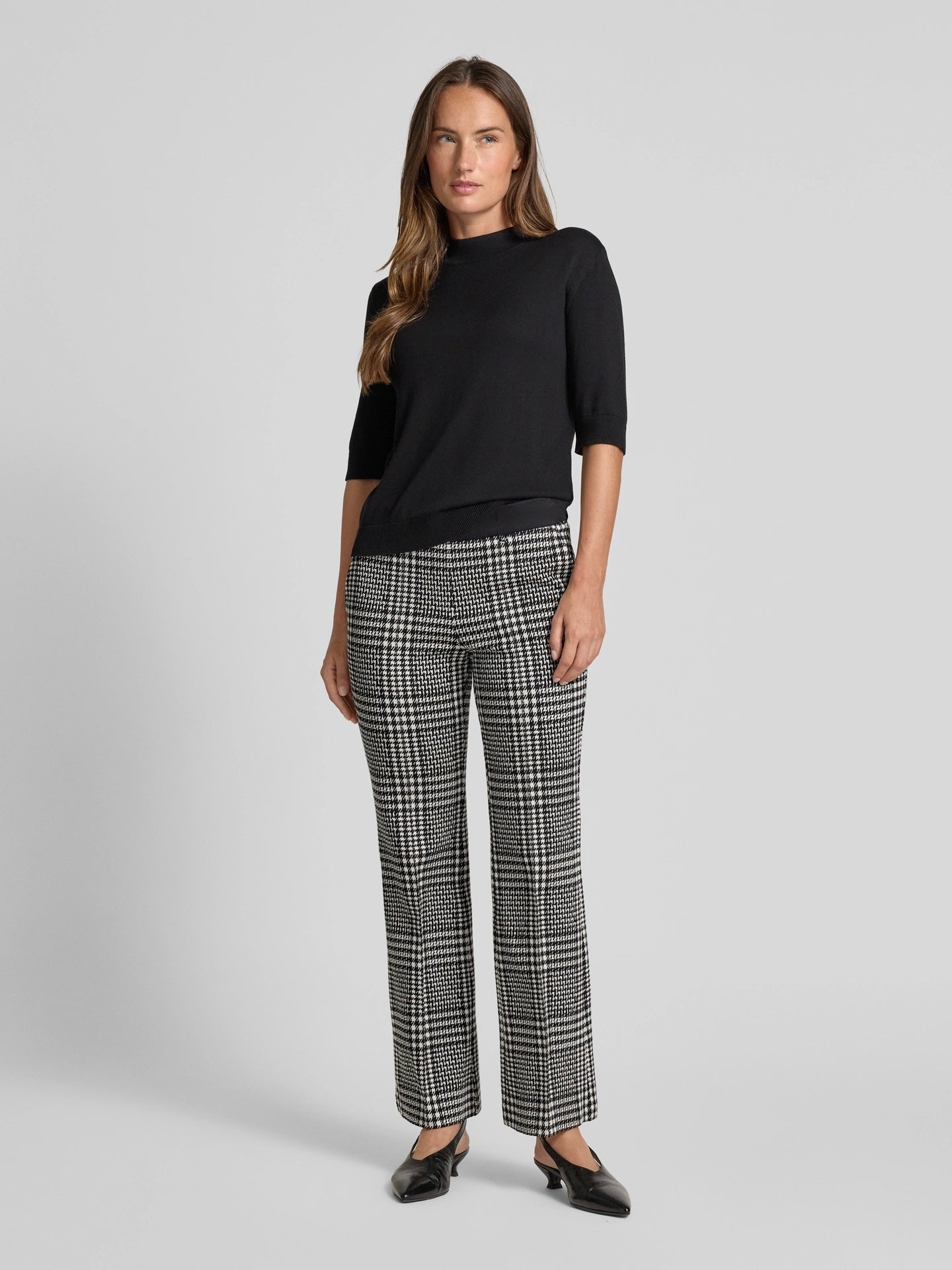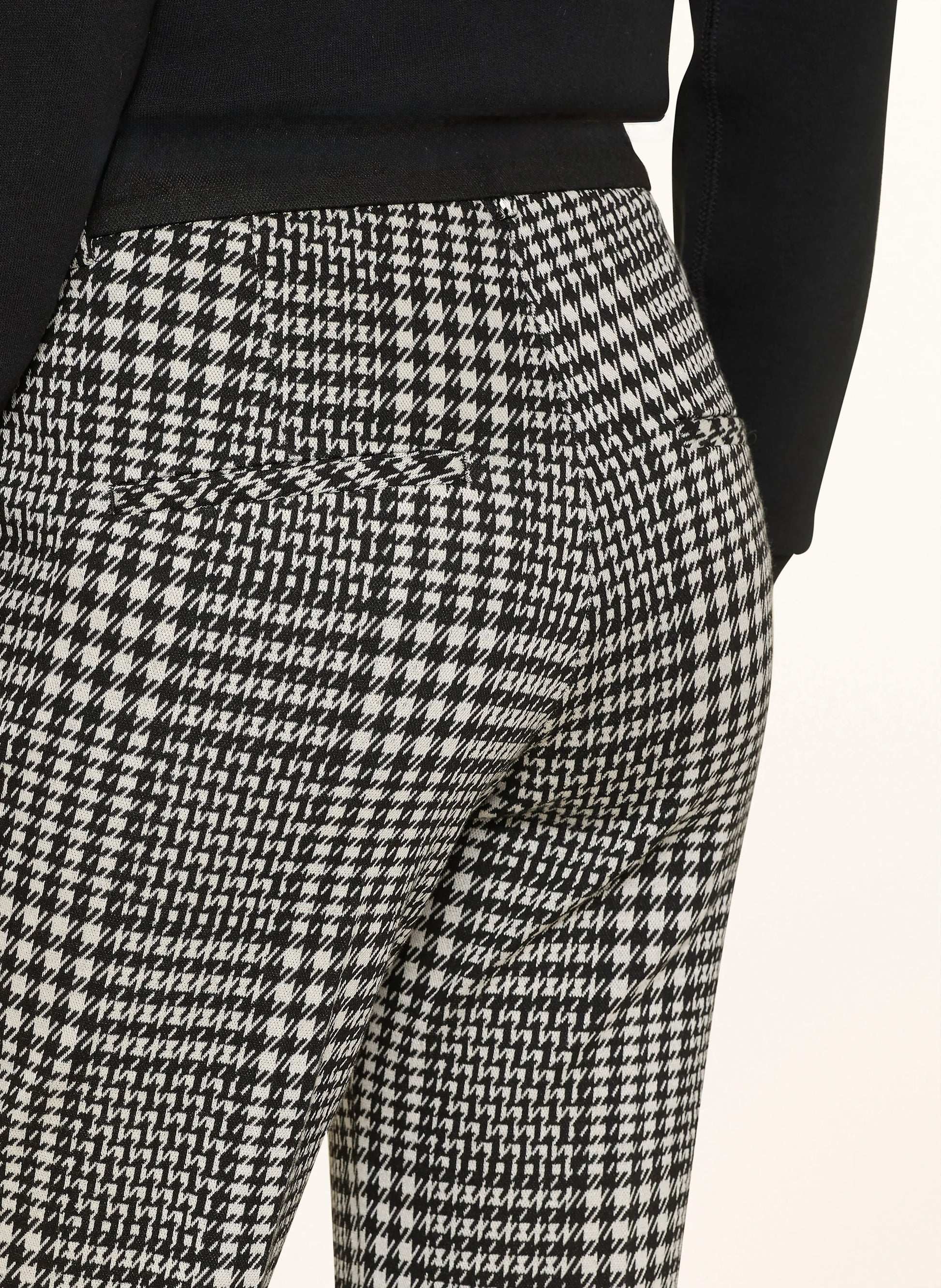 Trousers in a cropped style. These trousers impress with their striking black and white blurred glen check jersey, which lends a modern touch to the classic pattern. The waistband with an elastic insert and fine lacing ensures a comfortable fit and a subtle sporty look. Side pockets integrate functionally into the design. The cropped length and the signature shape create a clean, contemporary silhouette with character.