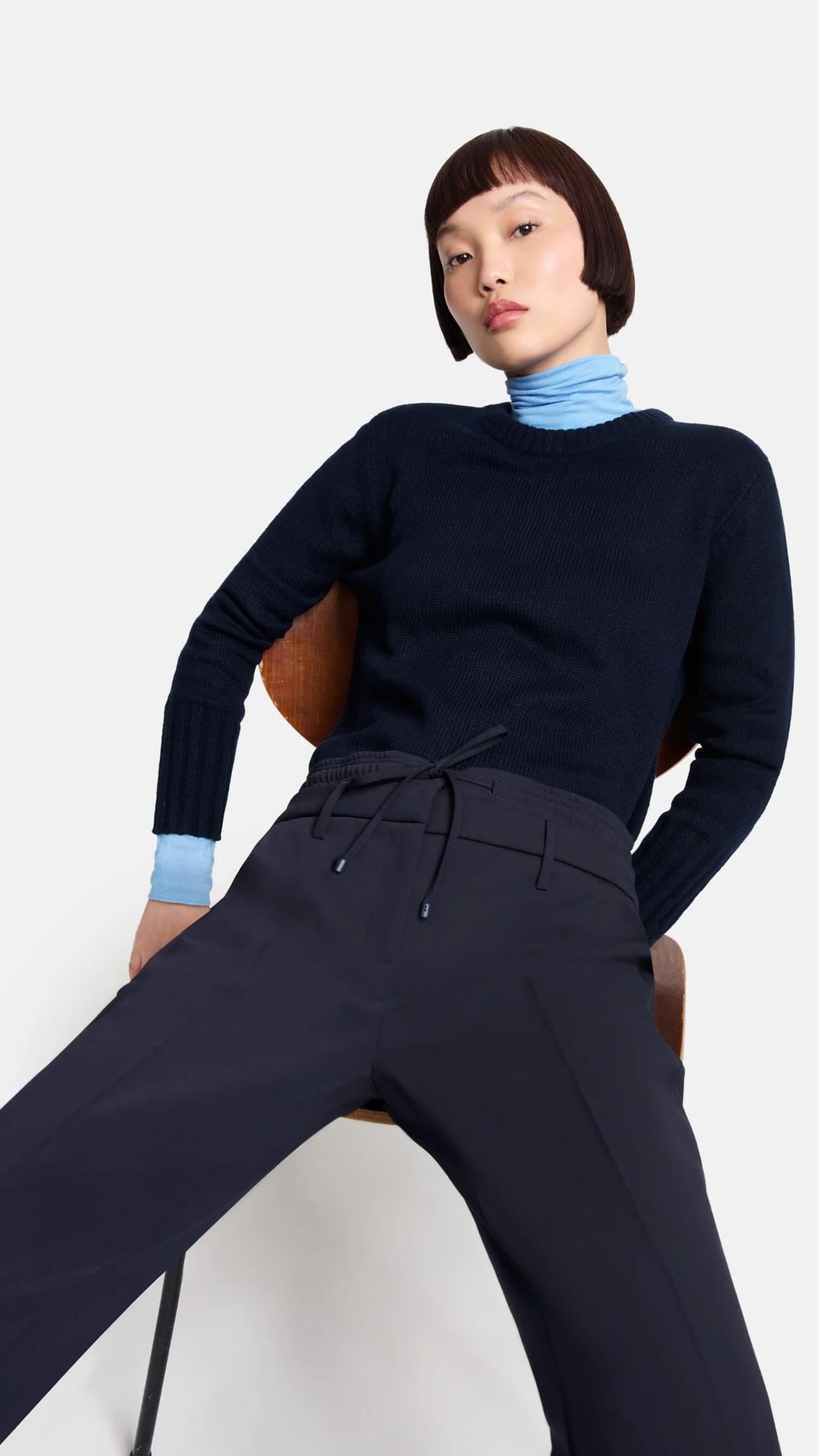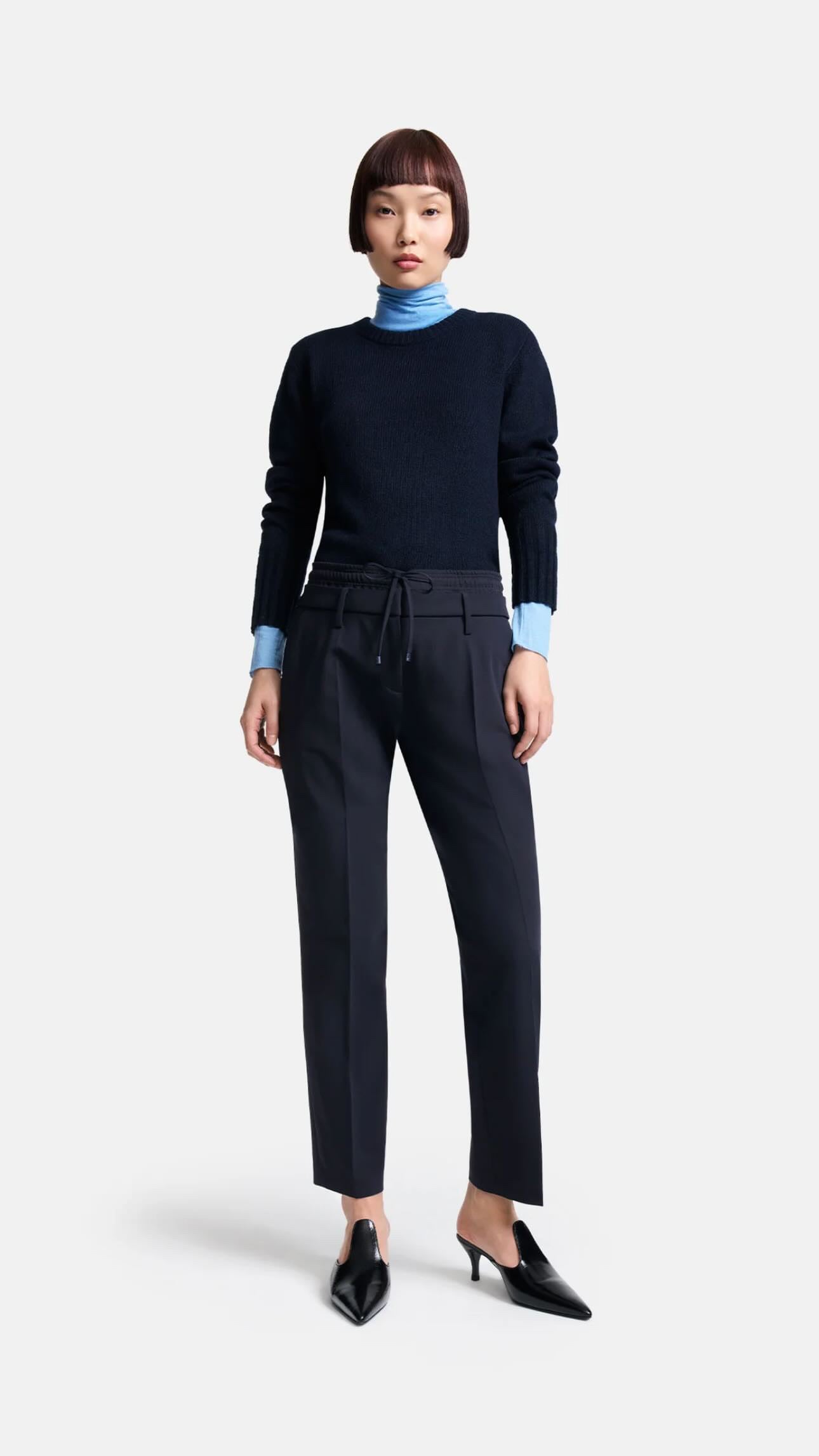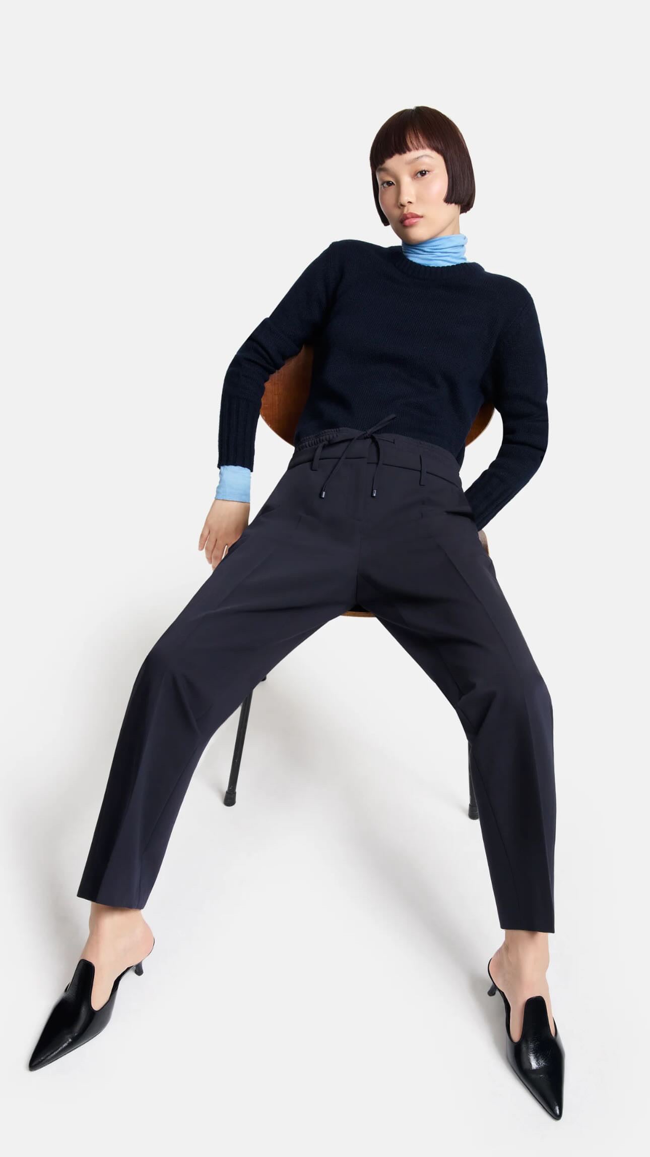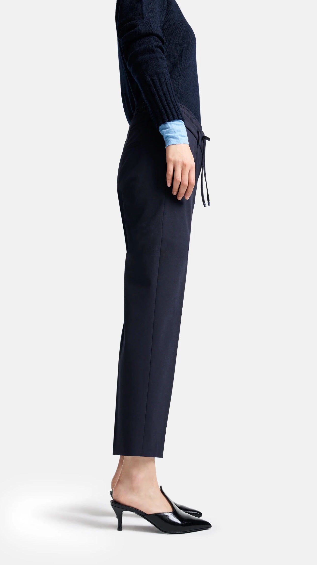 Trousers in a shortened carrot silhouette. The trousers with a modern double waistband lacing are made of high-quality Innovative Cool Wool Substitute.