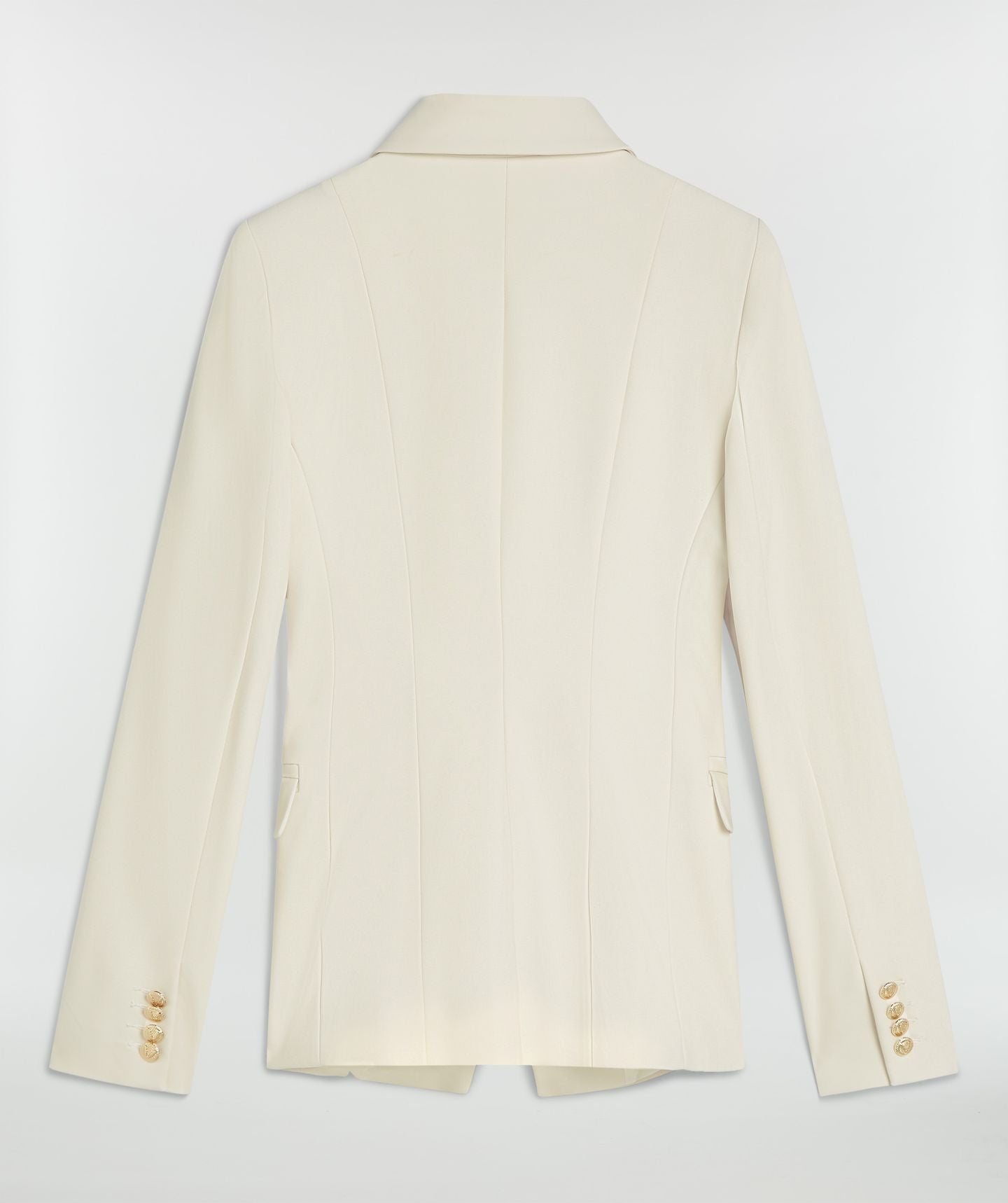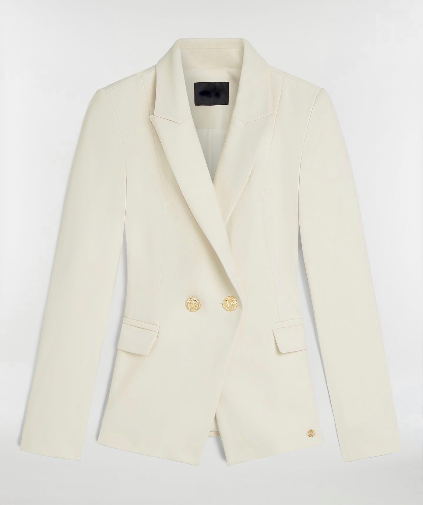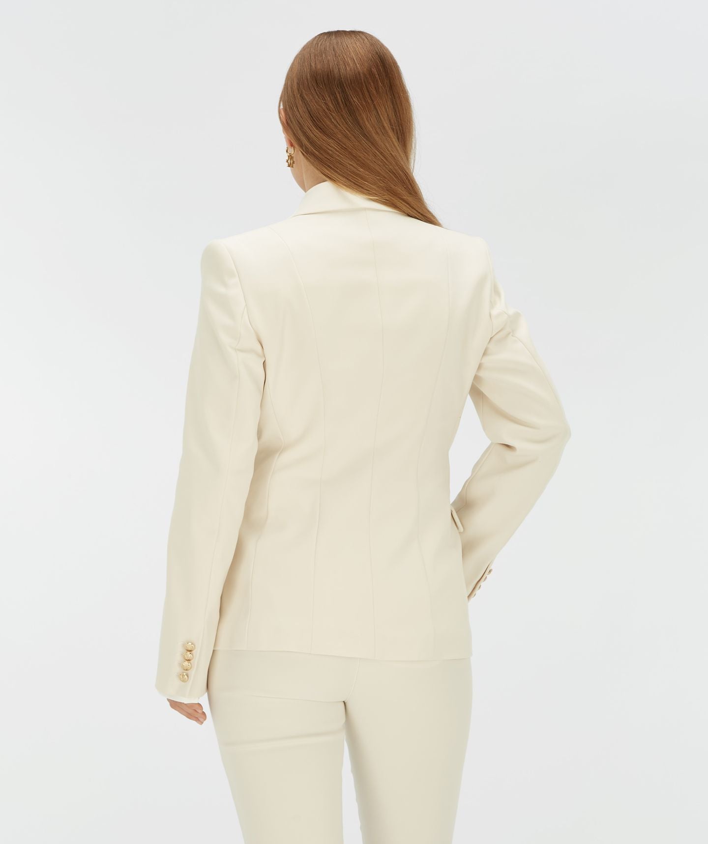 Women’s blazer in Creme White made from a high-quality blend of cotton, sourced through Better Cotton, and stretch. The tailored fit and branded buttons give the blazer a refined look.
