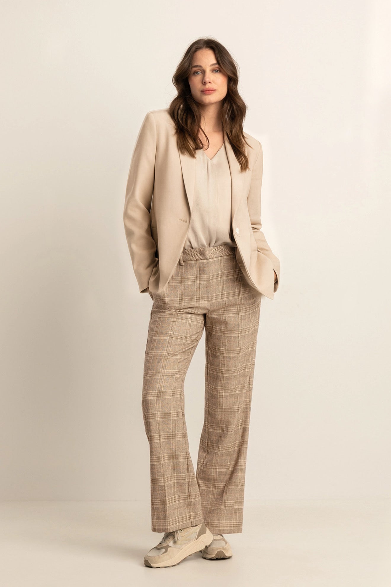Checked trousers – a smooth blend with stretch. Slim fit with slightly flared legs and a high waistband with belt loops. The classic check pattern in neutral tones makes these timeless trousers suitable for both business and casual wear. Comfortable thanks to the soft stretch and always stylish.